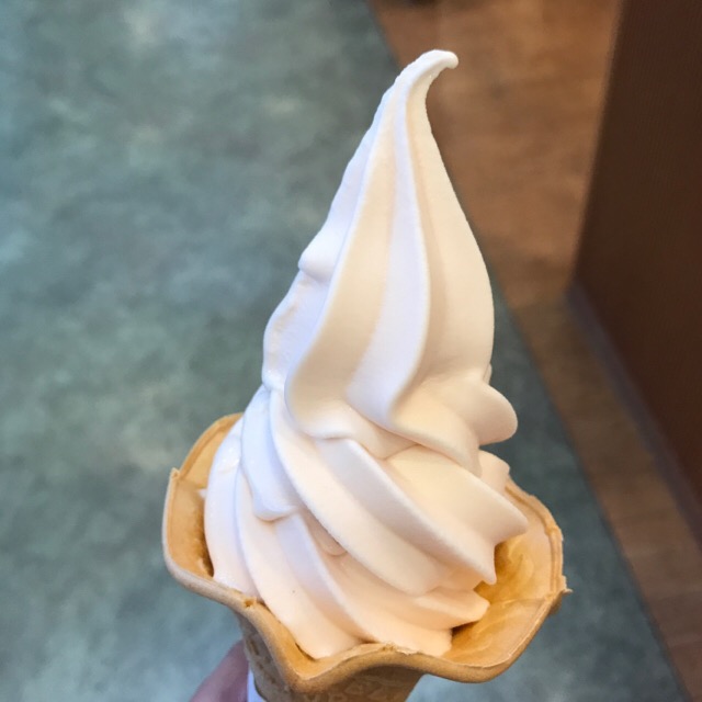 帰りは、8時間、トラックで帰りました。途中、SAで桃ソフトクリームを!
