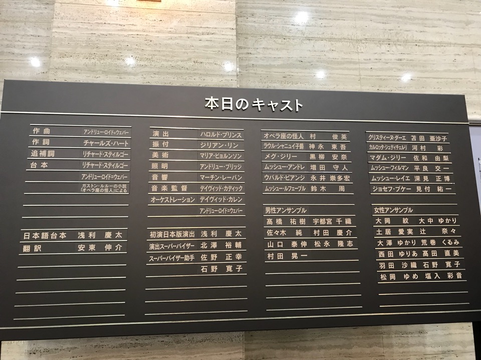 やっぱり嬉しいものです。だって劇団四季のキャストですよ。すごいことです。そして、なんと!エリザベト音大出身の村田くんのお名前も発見!やったー!大興奮で会場へ。