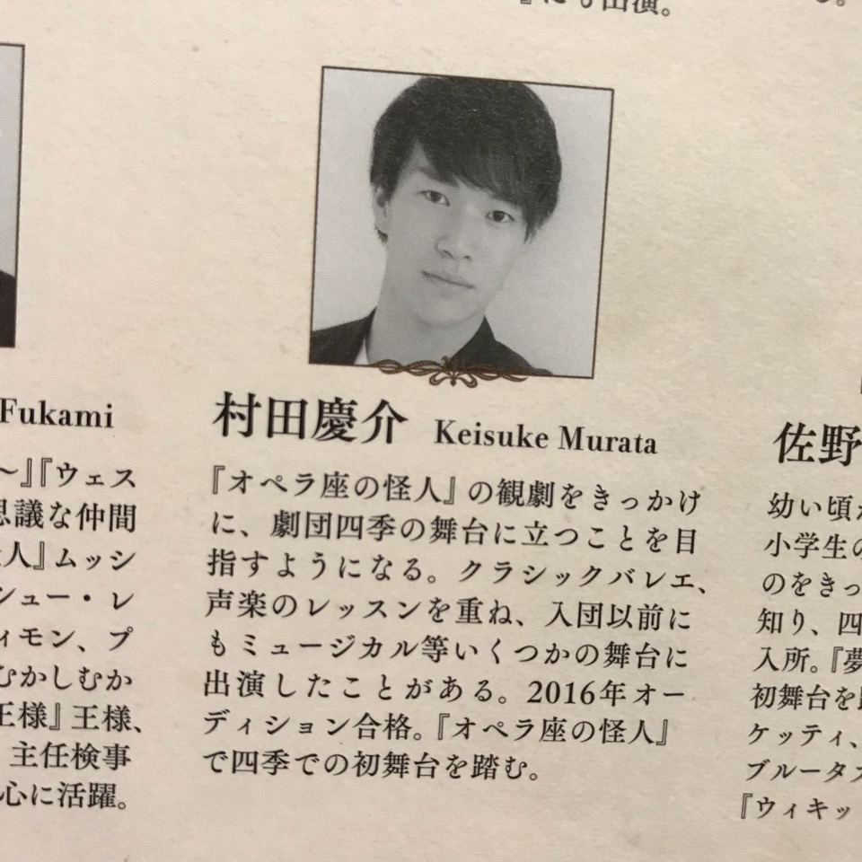 村田くん…オペラ座の怪人に憧れて目指した劇団四季。昨年合格して、今年のオペラ座の怪人公演でオンステするなんて、すごいです。これからは、観て貰う側なんですね!すごいなぁ。これからいろんなことがあると思いますが、果敢にチャレンジして、チャンスを手繰り寄せてくださいね。これからの活躍が楽しみです。