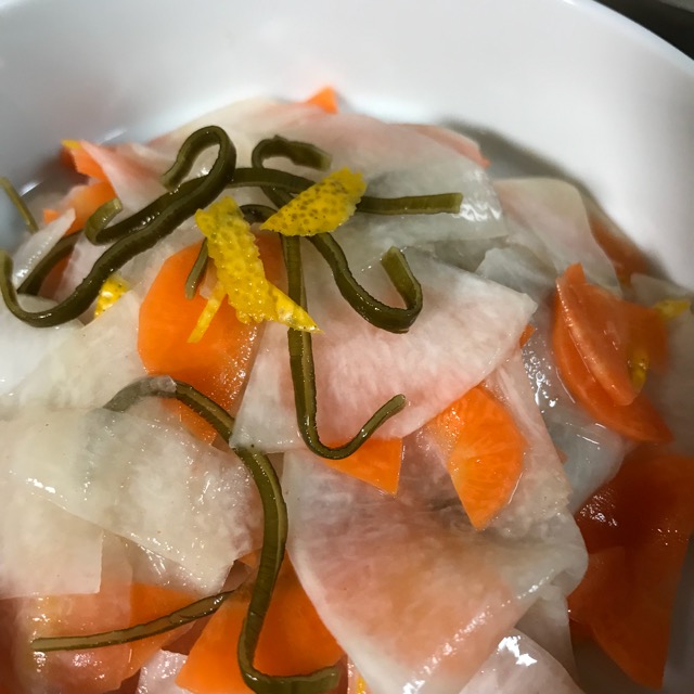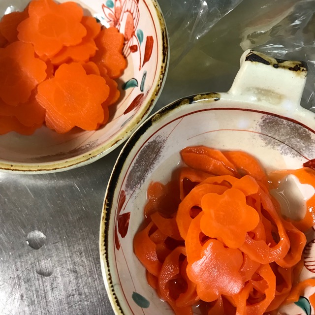 で、なます。我が家は千切りにしません。なぜだ?(笑)でも、千切りより、この方がそれぞれの素材が感じられるので、私はこの方が好きです。