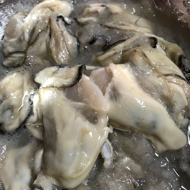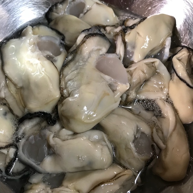 牡蠣を洗う