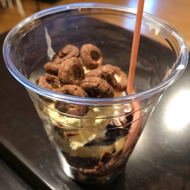 それと、チョコプリン、アイス、チョコフレークなどをトッピング!天才!天才的なおいしさです。え?私が知らないだけ?いやいや、これは素晴らしいです。