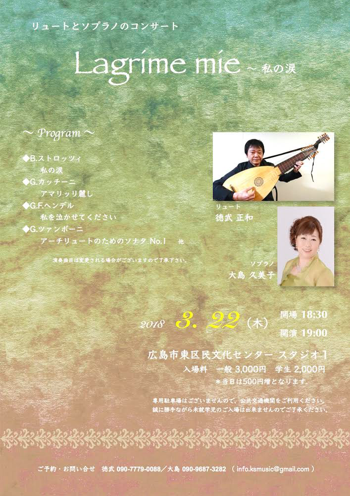 ただ、徳武先生のリュートに是非触れて頂きたい。そして、私も勉強したい、という思いがあります。