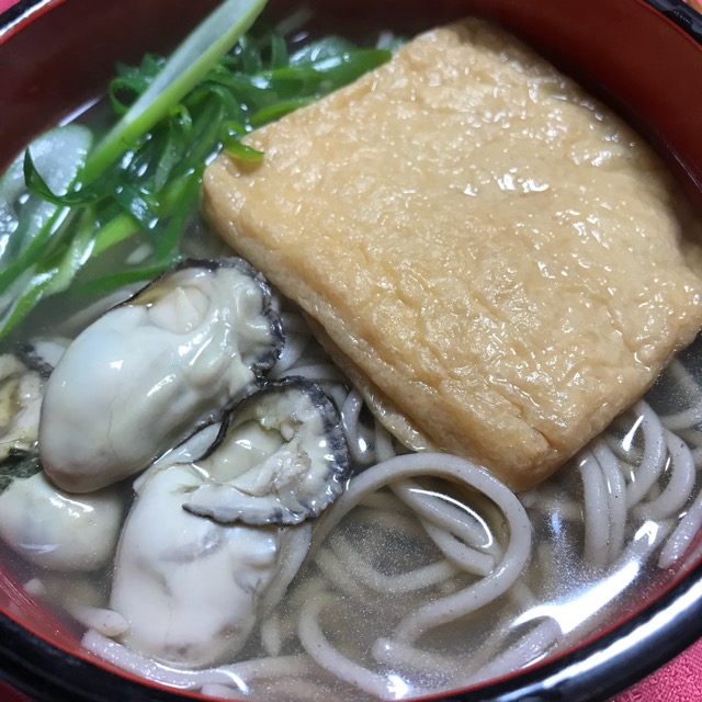 昨夜は寒かったのでキツネ蕎麦。そして、ちょこっと牡蠣乗せ(笑)