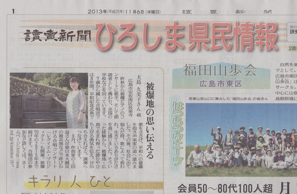 被爆ピアノのこと、私のちっぽけな歴史、レクイエム・プロジェクトのことを掲載して頂きました。担当して下さった記者の河津様に、本当に心から感謝しております。