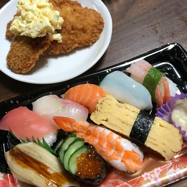 お買い物をして帰宅。母が書道で賞を頂いたお祝いをもう一度(笑)というのと、作る気力がなくてお寿司を買って帰りました。