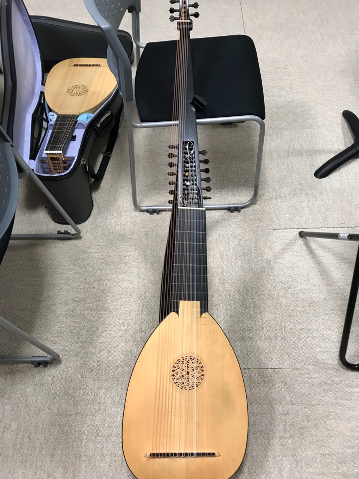 この長いリュートが、すぐ弦が狂うんです。21本弦があるので、調弦がすごく大変。この手間があるから、リュートが衰退したのかもという話になりました。