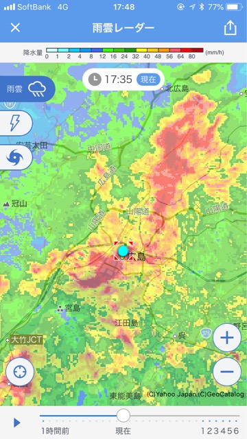 この警報が出る直前に帰宅したのですが、中区は既に道路が川のようになっていて、十戒のように、車の両側に翼のような水しぶきをあげながら、ズザザザーっと走っていました。最高時速20kmが限度。怖かったです。