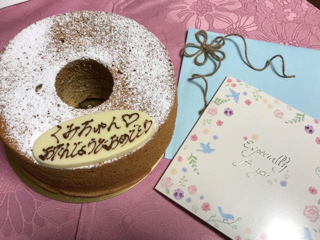 お家に帰って、ケーキを頂きました。母にもメッセージを見てもらいました。とっても感激していました。