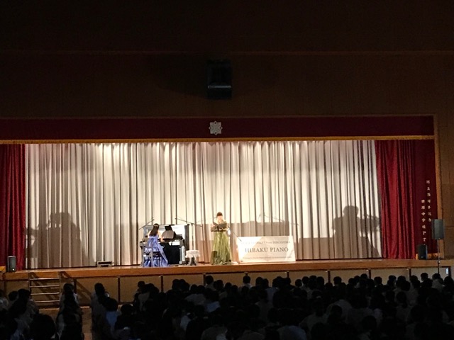 そして被爆ピアノコンサートが午後一から行いました。中学校の体育館で行いましたが、暑い中、生徒さん達は静かに聴き入って下さり感激しました。