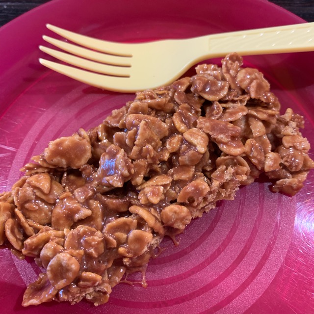 本日のおやつ、美味しかったですよー!コーンフレークをチョコレートとマシュマロでチンして和えて、パットに広げて冷まして、というもの。ごちそうさまでした♡いつも美味しいのです!