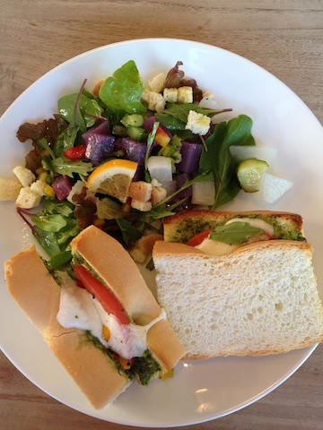 トマトとバジルとモッツァレラチーズのサンドウィッチとカプチーノを注文。とーっても美味しかった!最高!