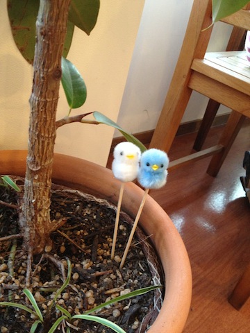 大満足の一日。最後は、植木に指してあったガーデンピックの鳥さん達に見送られて帰宅。