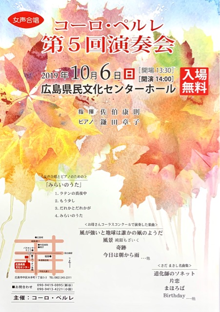 まずは、10月6日、コーロ・ペルレさんの演奏会のご案内です。