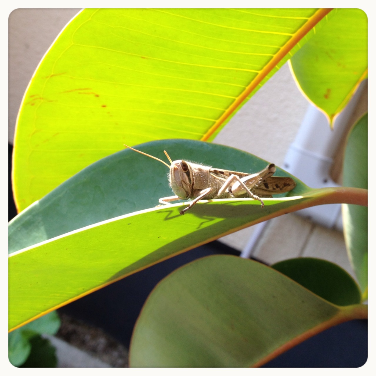 支度をして、お昼ご飯はイカ丼にして、ライフワンに向けて出発!もちろん今日は、アフタヌーンコンサート。相当な気合い。玄関先でバッタくんに見送ってもらった。ありがとー!