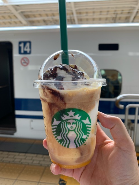 新大阪駅に着いて、スターバックスにて、「大阪めっちゃくだもんクリームフラペチーノ」を買って、551の豚まんを買って、新幹線で帰途に着きました。