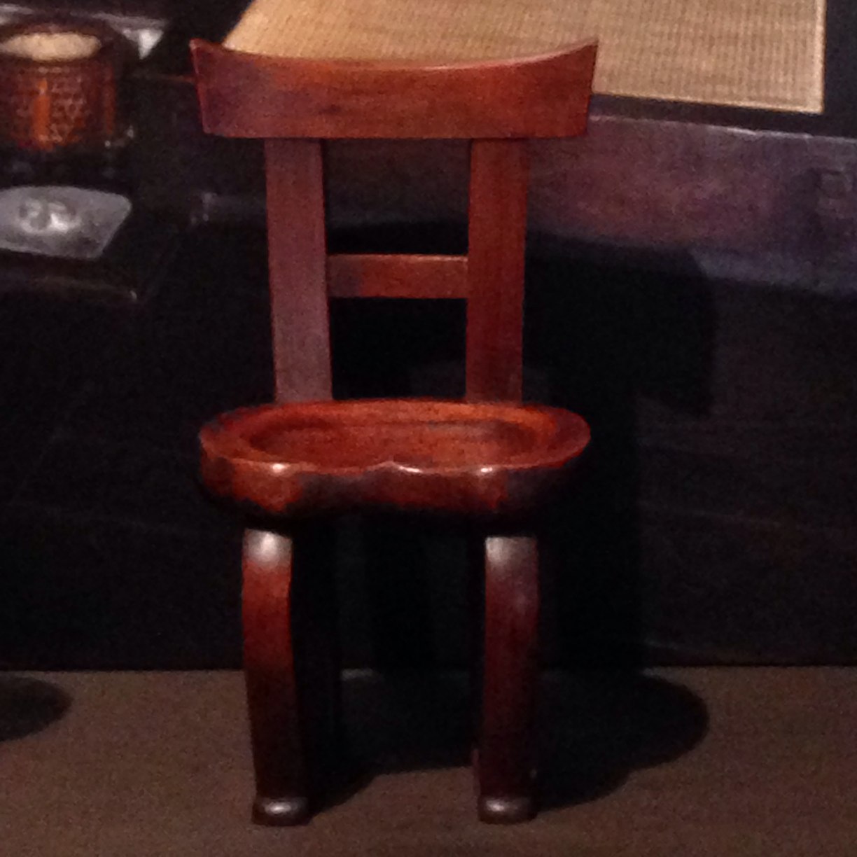 鳥居形椅子と言います。背もたれのところが鳥居でしょ?これ、座り心地抜群でした。