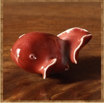 まずは初期の作品。若いこともあり、シンプルな中にも力強い流れのようなものも感じましたし、美しさへのこだわりを感じました。そんな中、思わず笑顔になったのがこちら。辰砂金魚という作品。河井寛次郎記念館のお写真を拝借しました。すみません。形へのこだわりというか、一切の手を抜いていない様が好きなのです。