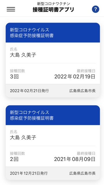 接種証明書です。
