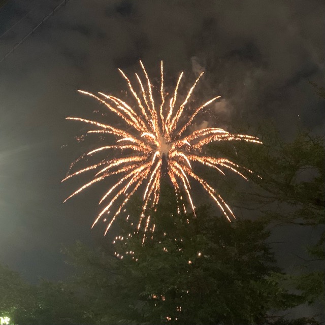 生徒さんを見送ってから、まだ音が続いていたので、走って行ってみました。そしたら!なんと本当に花火が!