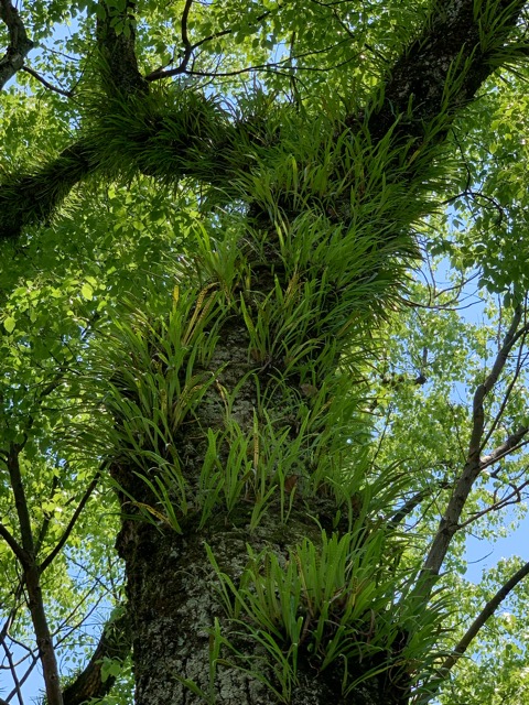 クスノキにはノキシノブが生えて、ふさふさです。